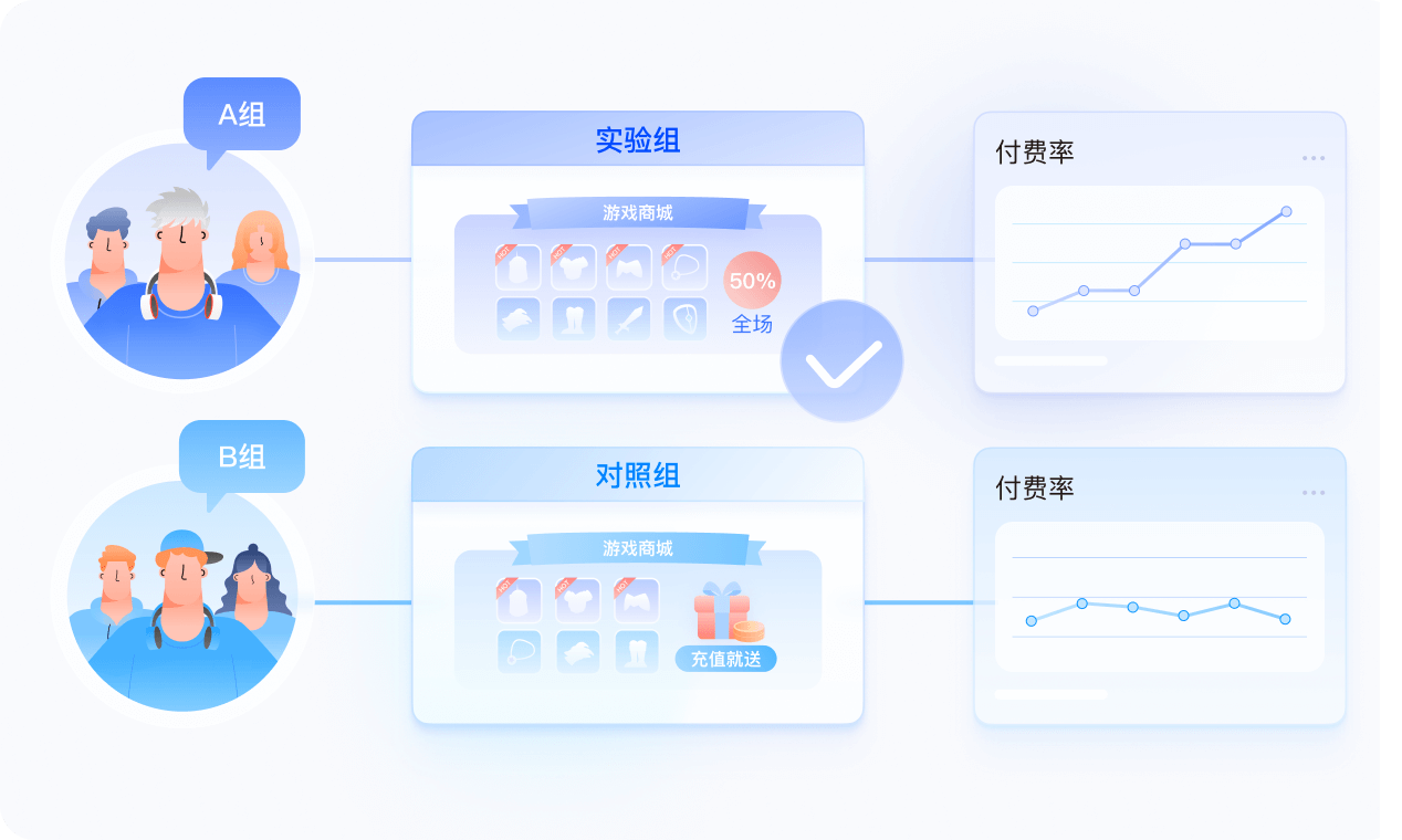 - A/B 实验支持多组策略对比、 小范围测试和自动优选,高效迭代运营策略