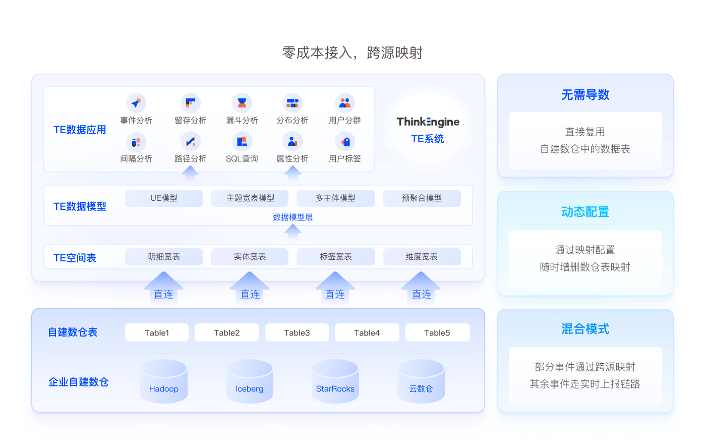 多源数据一键接入,客户端SDK、服务端日志、 第三方平台(广告/支付)数据自动化采集
