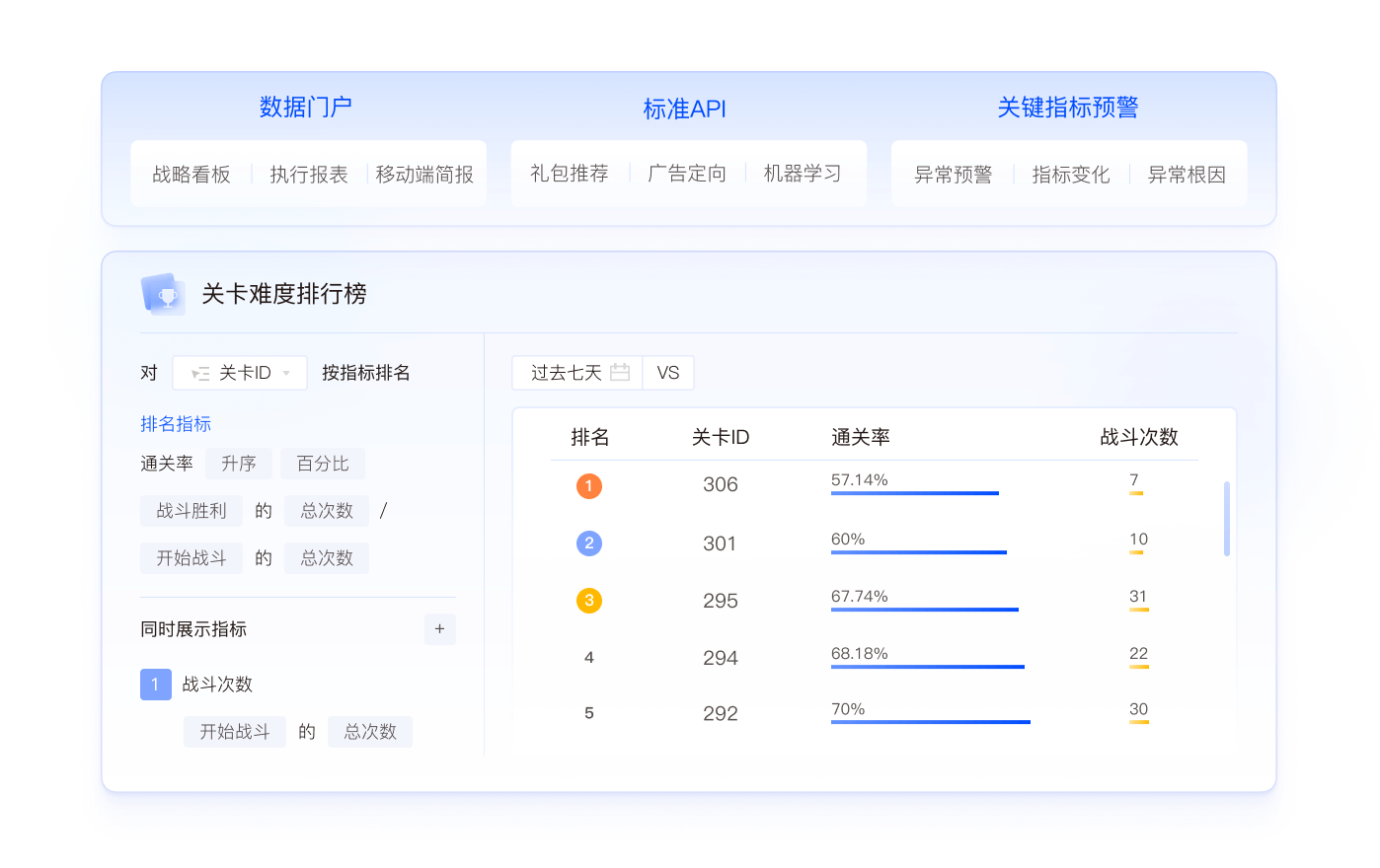 基于大模型的智能归因分析、数值平衡性模拟等 深度分析模块,通过 AI 辅助数据洞察。