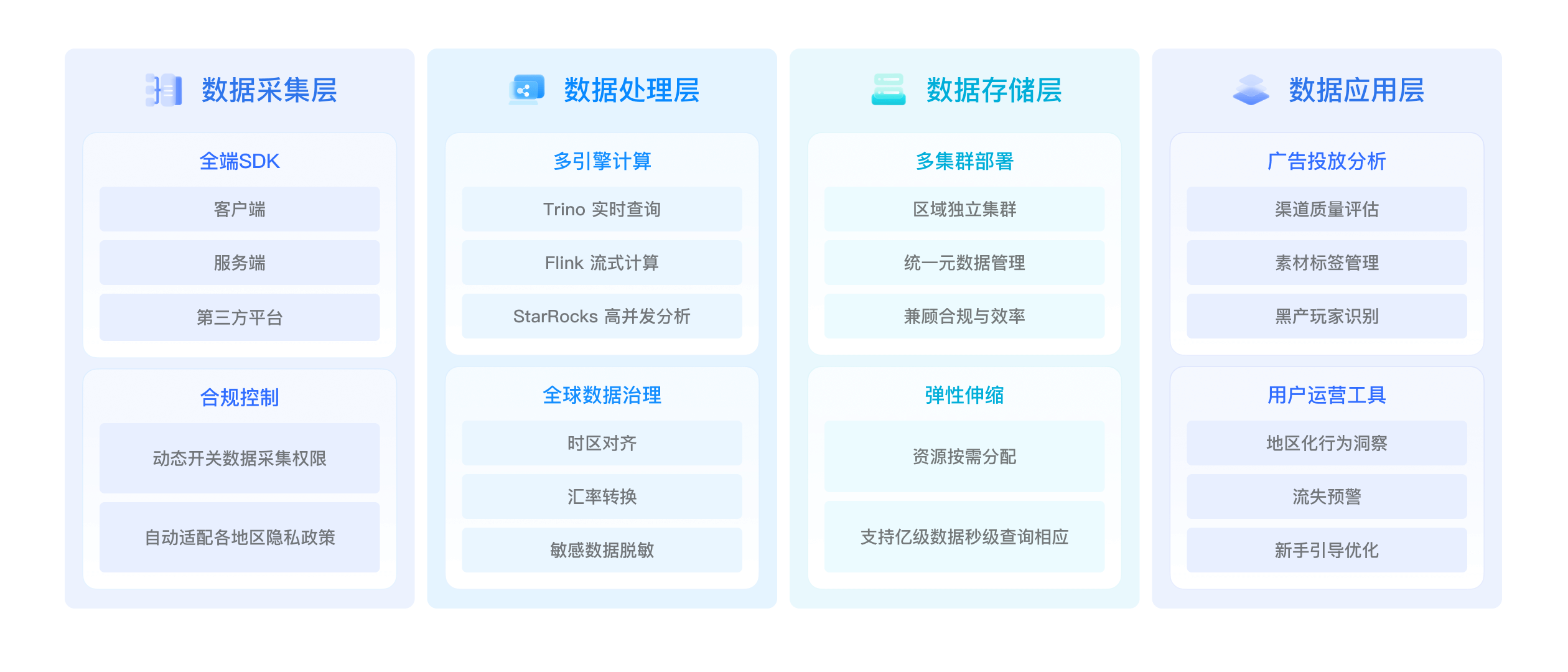 整合多地区数据,统一分析视图,实现广告投放、 版本迭代的全球统筹。