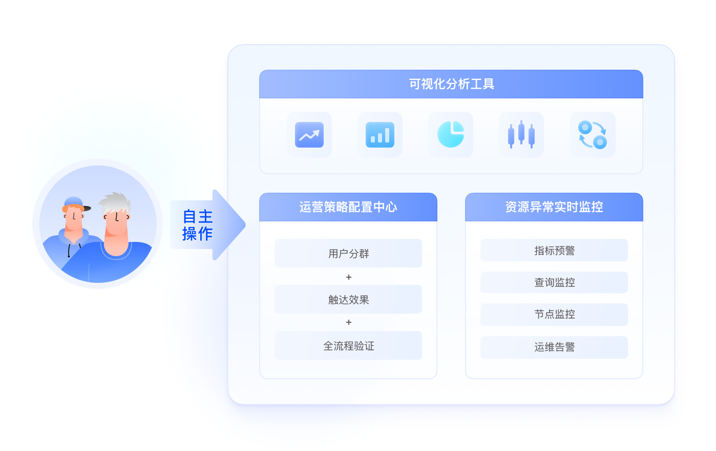 运营策略配置中心, 实现用户分群、触达、效果验证全流程贯通。